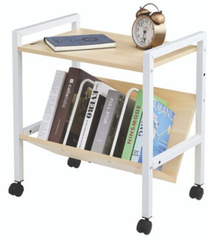 Modern Side Coffee End Table w Customizable Undershelf Bookends & Castors Birch