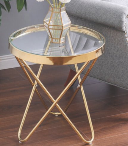 Clear Glass Side Table LivingRoom Coffee Tables Corner Console Desk Gold Legs