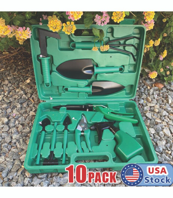 10pc Garden Tool Set Vegetable Flower Gardening Hand Tools Kits w/ Carrying Case